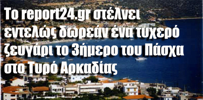 04.09.12 - Το report24.gr στέλνει εντελώς δωρεάν ένα τυχερό ζευγάρι το 3ήμερο του Πάσχα στο Τυρό Αρκαδίας