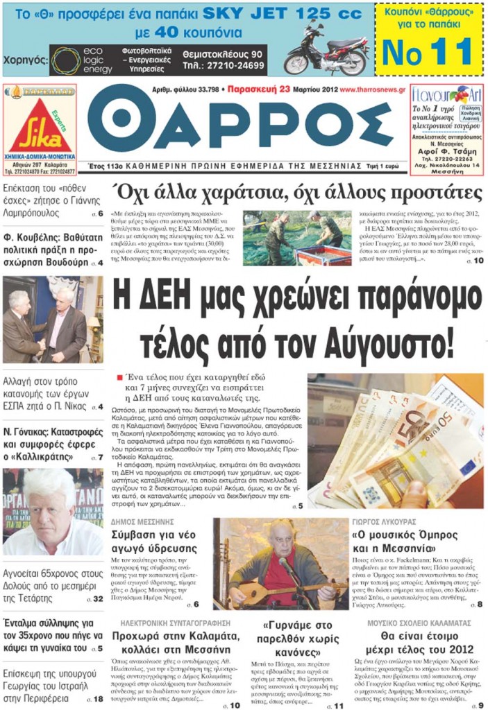 03.23.12 - Η ΔΕΗ μας χρεώνει παράνομο τέλος από τον Αύγουστο!