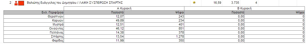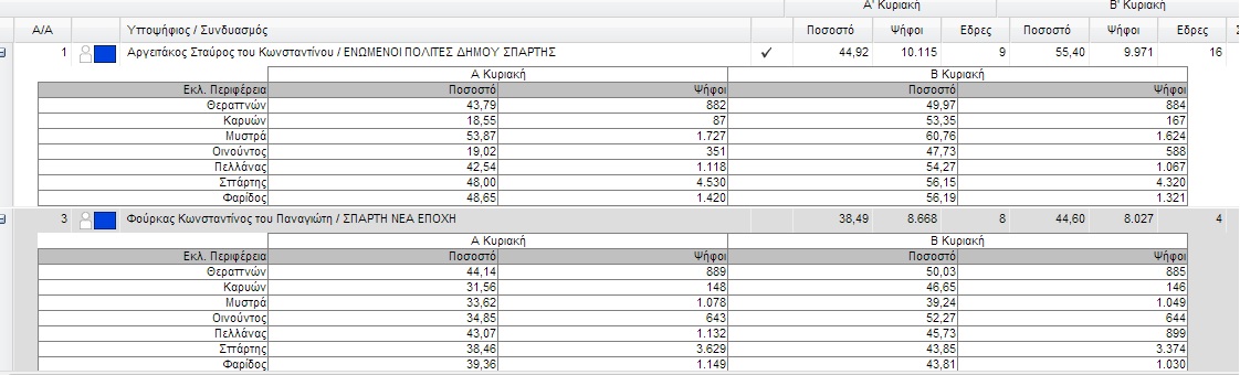 Επίσης σε επόμενη ανάρτηση θα σας παρουσιάσουμε και το ποσοστό που έλαβαν οι Υποψήφιοι στην Δημοσκόπηση από όλα τα Δημοτικά Διαμερίσματα του διευρυμένου Δήμου Σπάρτης που είναι αναλυτικά τα εξής: