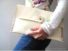 3. Τελευταία πρόταση είναι η δημιουργία μιας τσάντας φακέλου, που πρέπει να υπάρχει στην ντουλάπα μας. Μπορεί να χρησιμοποιηθεί ακόμα και για τσάντα μεταφοράς φορητού υπολογιστή ή ακόμα και για πορτοφόλι, σε μικρότερο μέγεθος. Εσείς αποφασίζετε. Θα χρειαστείτε ένα κομμάτι δέρματος ή δερματίνης, ένα περφορατέρ, σουέντ κορδέλα και κόλλα υφασμάτων