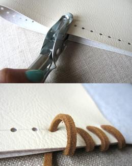 Κάντε τρύπες με το περφορατέρ και ξεκινήστε να περνάτε το κορδόνι όπως δείχνει η εικόνα. Στο τέλος του κάντε ένα κόμπο και για ασφάλεια κολλήστε και με λίγη κόλλα.
