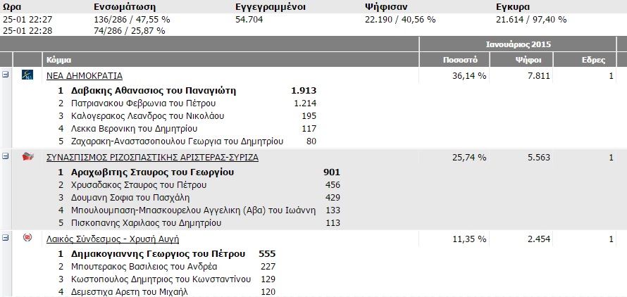 Εκλογές 2015… Η κατανομή των εδρών στην Λακωνία…