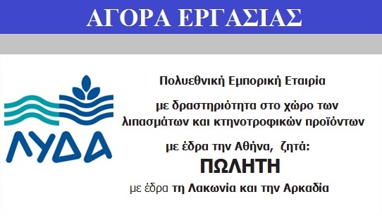 Εμπορική Εταιρία ζητά Πωλητή με έδρα τη Λακωνία και την Αρκαδία.