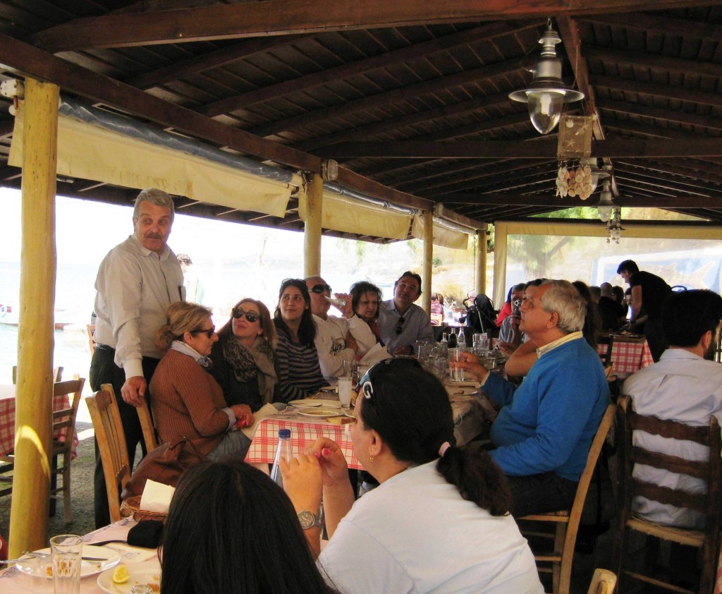 Μετά το τέλος των συναντήσεων, επισκέφθηκαν τη Στούπα, όπου έφαγαν και στη συνέχεια, με λεωφορείο ξεναγήθηκαν σε Νεοχώρι, Πύργο, Καρυοβούνι, Μηλέα, Πλάτσα, Νομιτσί, Θαλάμες, Λαγκάδα, Άγιο Νικόλαο και Άγιο Δημήτριο, με ενδιάμεσες στάσεις σε διάφορους οικισμούς, με τελικό σταθμό το Ανοικτό Θέατρο Μάνης και την Πλάτσα, όπου και απήλαυσαν το βραδινό τους φαγητό.