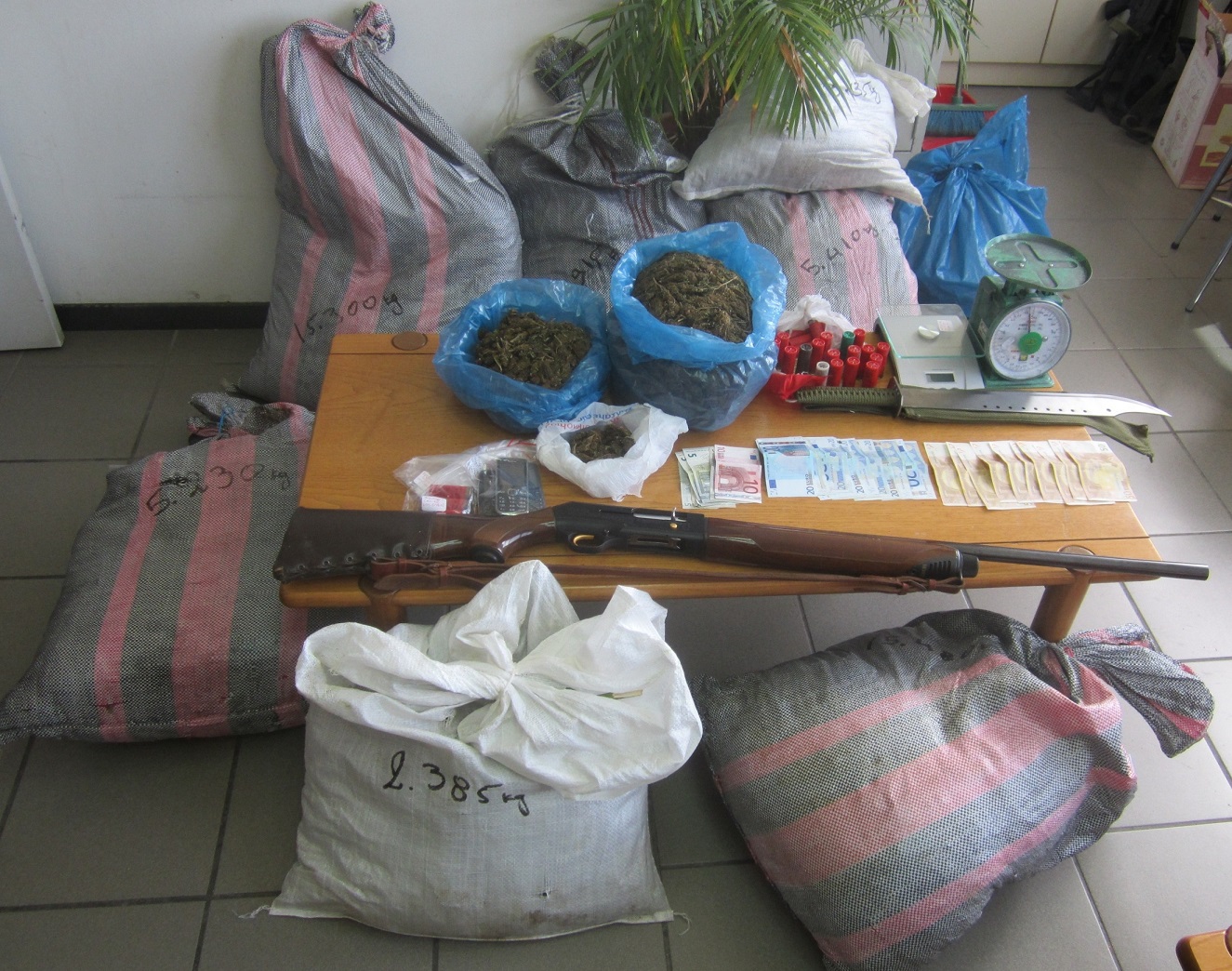 Επιπλέον κατασχέθηκαν πάνω από -53- κιλά κάνναβης, ένα κυνηγετικό όπλο, ένα ξίφος, φυσίγγια, ζυγαριές κ.α.