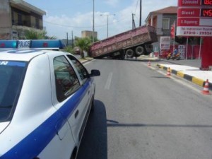 Φορτηγό δίπλωσε στη μέση του δρόμου της Σπάρτης