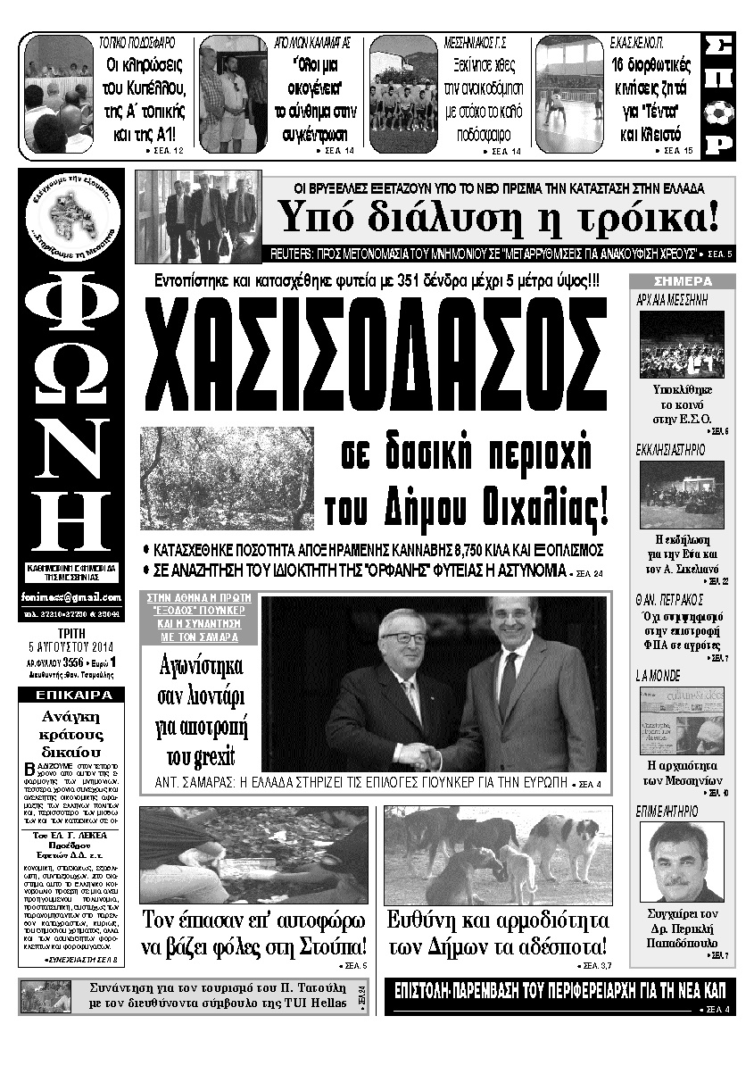 Οι Εφημερίδες Λακωνίας Μεσσηνίας 5 Αυγούστου 2014