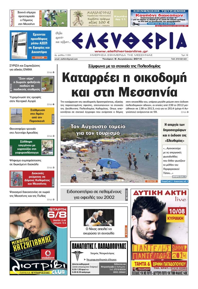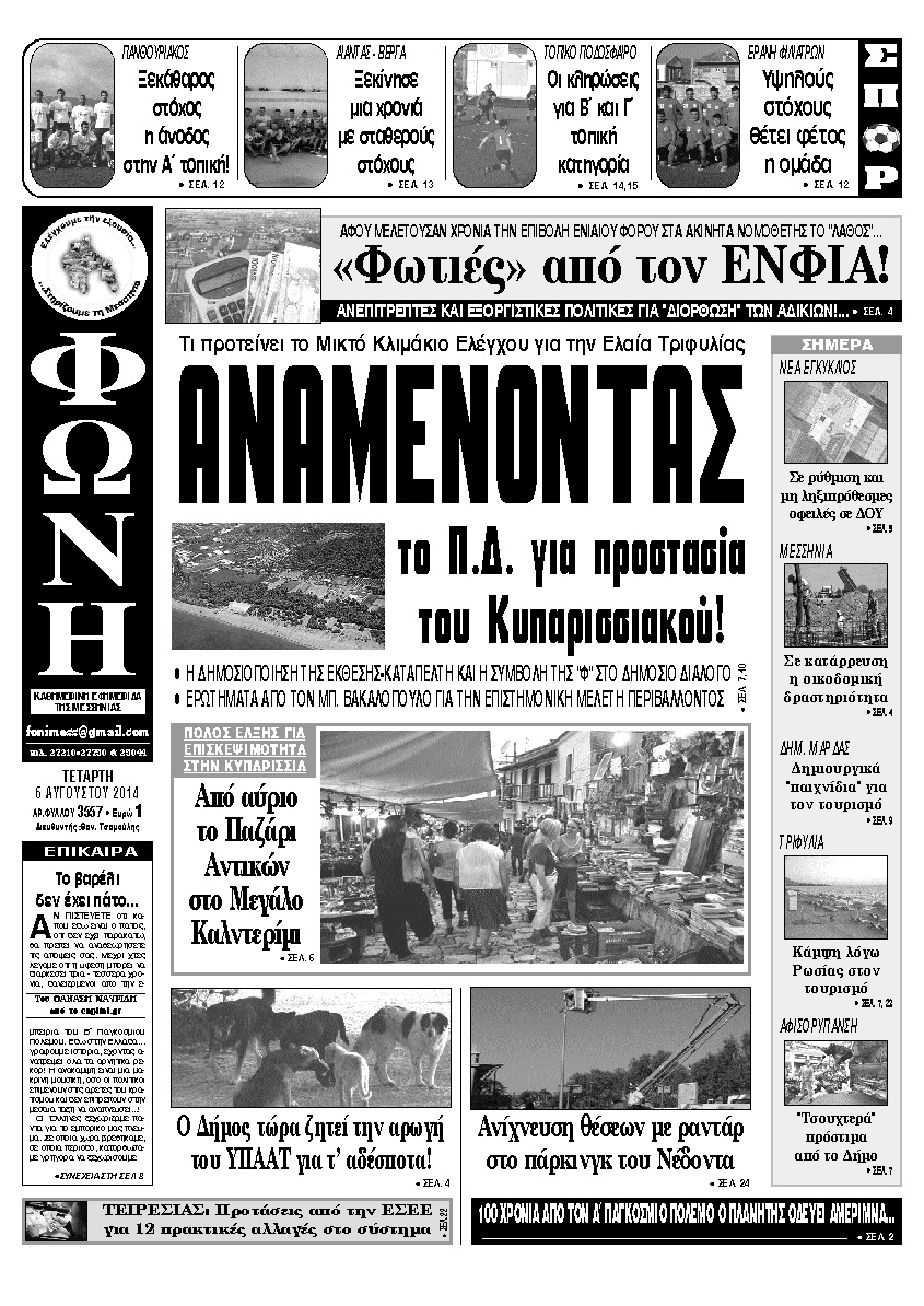 Οι Εφημερίδες Λακωνίας Μεσσηνίας 5 Αυγούστου 2014