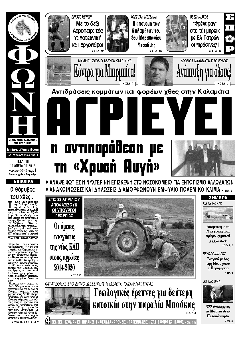 Οι εφημερίδες της Μεσσηνίας 10 Απριλίου 2013
