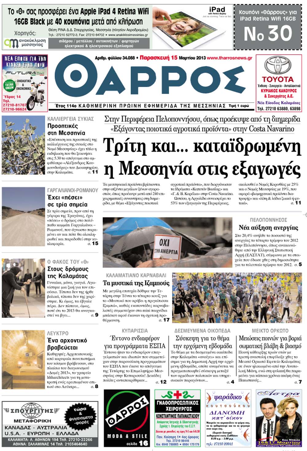 Οι εφημερίδες της Μεσσηνίας 15 Μαρτίου 2013
