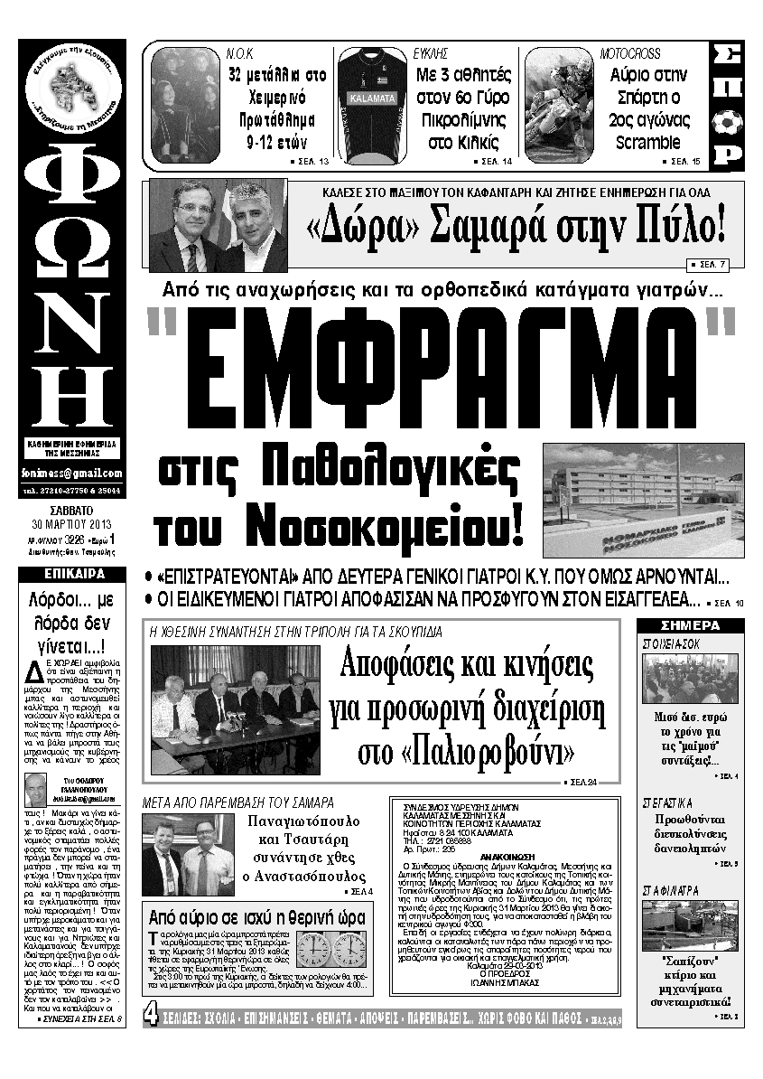 Οι εφημερίδες της Μεσσηνίας 30 Μαρτίου 2013