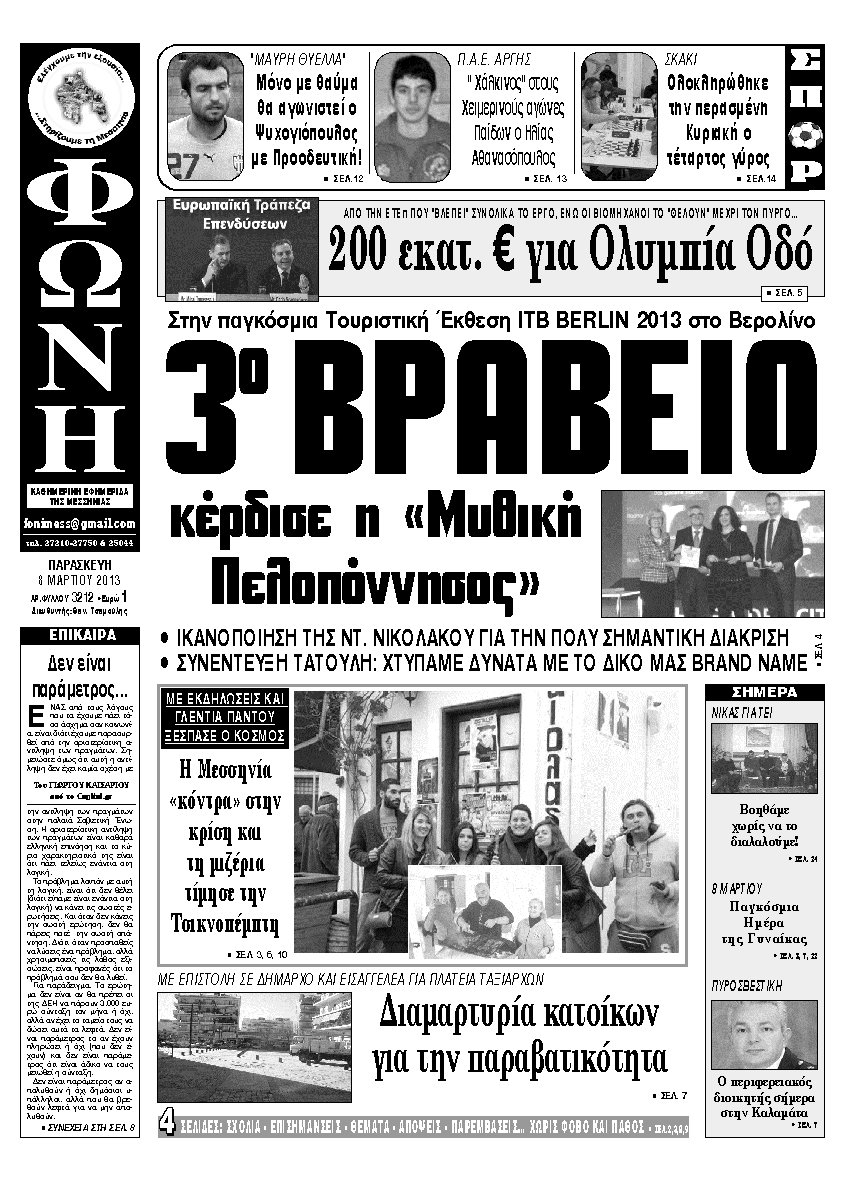 Οι εφημερίδες της Μεσσηνίας 8 Μαρτίου 2013