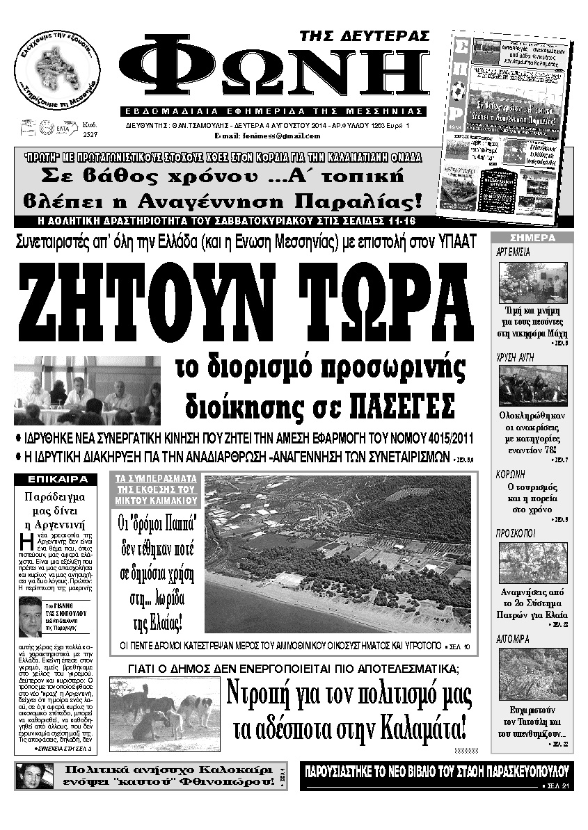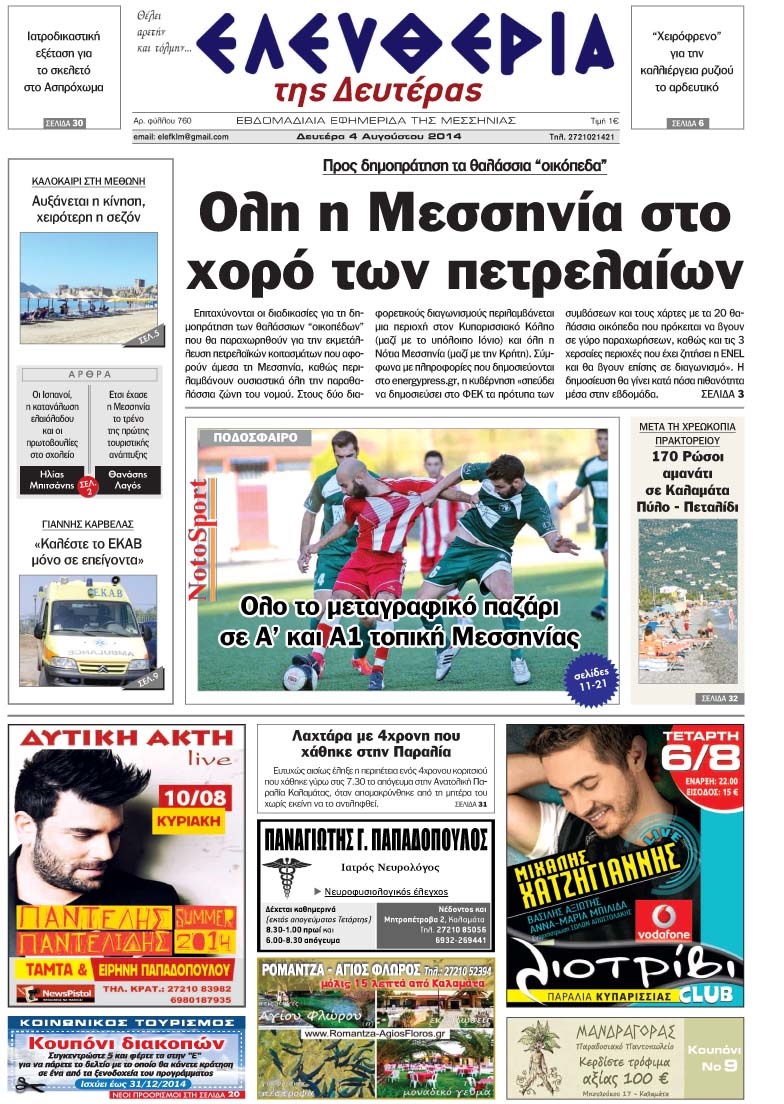 Οι Εφημερίδες Λακωνίας Μεσσηνίας 5 Αυγούστου 2014