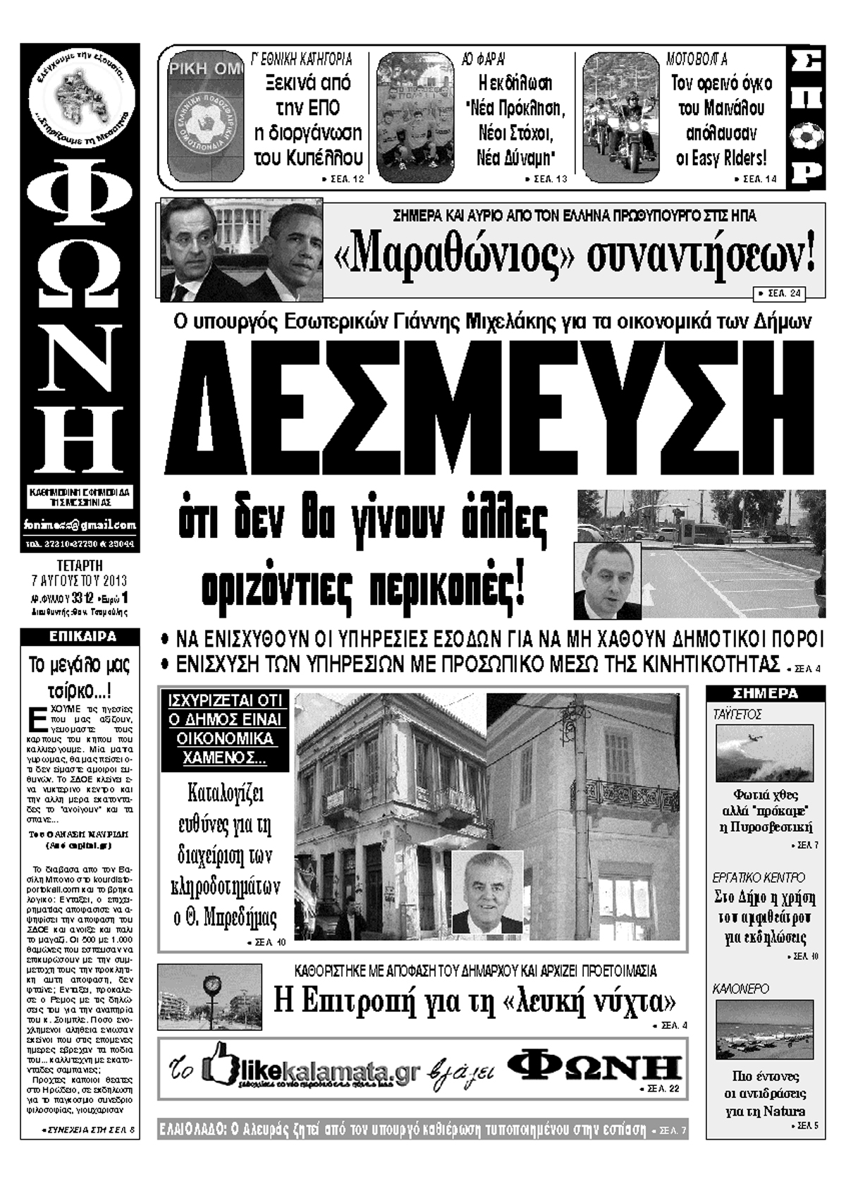Η Φωνή της Μεσσηνίας σήμερα 7 Αυγούστου