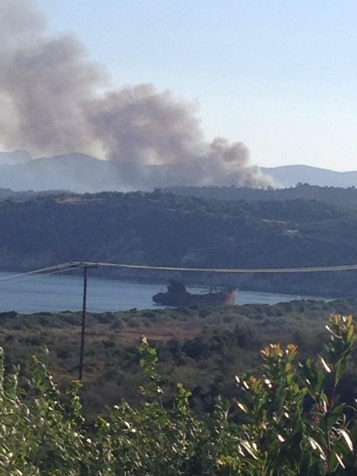 Στο Γύθειο η φωτιά στη θέση Αιγές ξεκίνησε στις 6:20 το απόγευμα της Κυριακής και με τις φλόγες δίνουν μάχη 44 πυροσβέστες με 18 οχήματα και 11 άτομα πεζοπόρο τμήμα.
