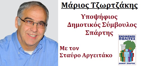 Μάριος Τζωρτζάκης Υποψήφιος Δημοτικός Σύμβουλος Σπάρτης με τον Σταύρο Αργειτάκο