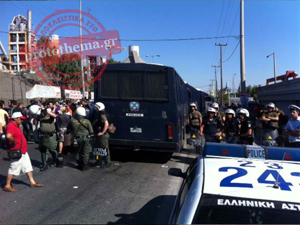 Όπως έγινε γνωστό από την αστυνομία, στο σημείο κατέφθασαν το πρωί οι αστυνομικές δυνάμεις με εντολή του εισαγγελέα, ύστερα από προσφυγή εργαζομένων στην εταιρεία, οι οποίοι ζητούσαν την παρέμβαση της πολιτείας επειδή δεν τους επέτρεπαν οι απεργοί να μπουν στον χώρο εργασίας.