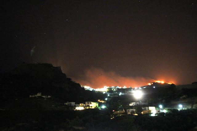 Η φωτιά απόψε τα μεσάνυχτα δεν έχει κοπάσει καθόλου και ολόκληρο το νησί είναι  ανάστατο.
