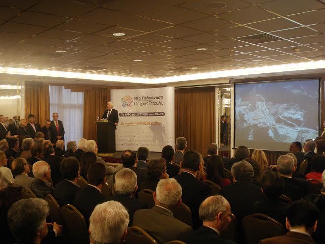 «Η νίκη μας στις 18 Μαΐου θα είναι νίκη πρώτα για την Πελοπόννησο και μετά για την χώρα γιατί θα επισφραγίσει το νέο μοντέλο που εμείς φέραμε πριν από τέσσερα χρόνια» τόνισε ο Περιφερειάρχης Πελοποννήσου Πέτρος Τατούλης στην πολιτική ομιλία του σε μια ασφυκτικά γεμάτη αίθουσα του ξενοδοχείου DivaniCaravel στην Αθήνα τη Δευτέρα 5 Μαΐου 2014 και πρόσθεσε ότι «Το μοντέλο της Νέας Πελοποννήσου είναι αυτό που άφησε πίσω του τα κομματικά χαρακώματα και απέδειξε ότι μπορεί να πετυχαίνει στόχους ακόμη και μέσα στην βαθύτερη κρίση».