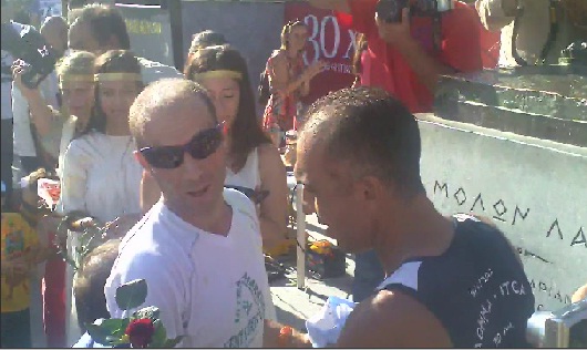 Ο Γιάννης Δημόπουλος τερμάτισε μαζί με τον άλλο Έλληνα Σπύρο Σπυρόπουλο αγκαλιά μέσα σε χειροκροτήματα από πλήθος κόσμου που βρέθηκε στο στάδιο Σπάρτης.