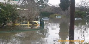 Οι Νέες Εργατικές Κατοικίες στην οδό Κατακόλου έχουν μετατραπεί σε μιά απέραντη λίμνη με  τα νερά να είναι πάνω από ένα (1.00) μέτρο.