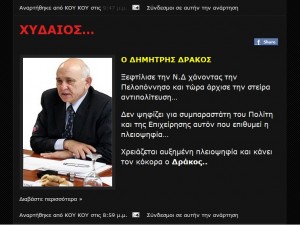 Η επίσημη ιστοσελίδα του συνδυασμού “Νέα Πελοπόννησος” του Πέτρου Τατούλη χαρακτηρίζει τον Δράκο «Χυδαίο»..???