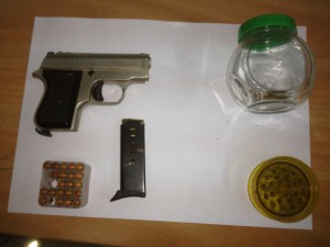 Κατασχέθηκαν ένα πιστόλι, φυσίγγια και μικροποσότητα κάνναβης.