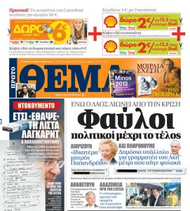Το ΠΡΩΤΟ ΘΕΜΑ, σε σημερινό ρεπορτάζ του υποστηρίζει ότι ο Περιφερειάρχης Πελοποννήσου Πέτρος Τατούλης , έδωσε έργα 15 εκατομμυρίων σε τεχνικές εταιρείες των παιδιών του εμπλέκοντας και τον αδερφό του. Το ρεπορτάζ αναφέρει  για έργα που έχουν γίνει στην Πελοπόννησο ασφαλτόστρωσης σε διάφορες περιοχές.