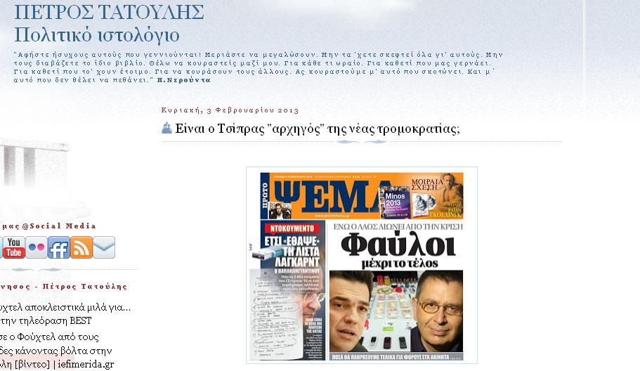 Ιδιαίτερη σημασία έχει και η φωτογραφία της ανάρτησης στο μπλογκ του κ. Τατούλη