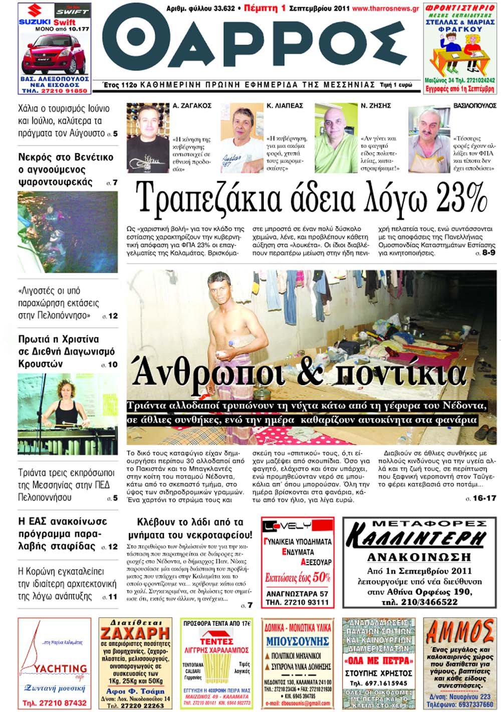 Το πρωτοσέλιδο απο το Θάρρος Μεσσηνίας 1 Σεπτεμβρίου 2011