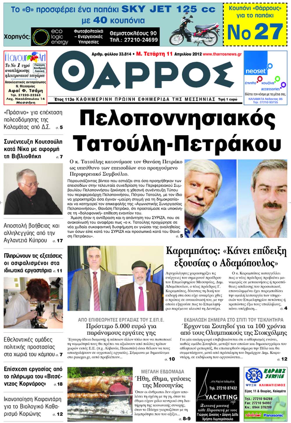 Το πρωτοσέλιδο απο το Θάρρος Μεσσηνίας 11 Απριλίου 2012