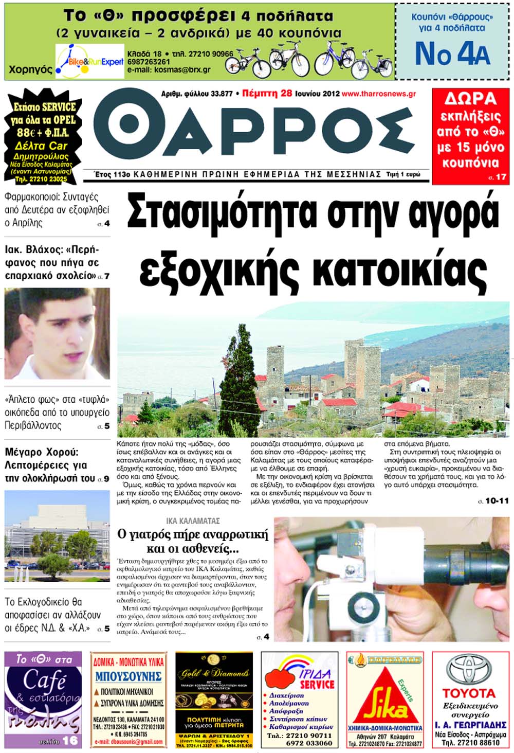 Το πρωτοσέλιδο απο το Θάρρος Μεσσηνίας 28 Ιουνίου 2012