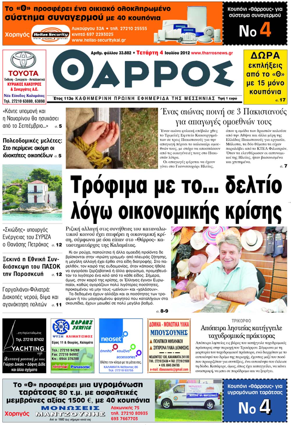 Το πρωτοσέλιδο απο το Θάρρος Μεσσηνίας 4 Ιουλίου 2012