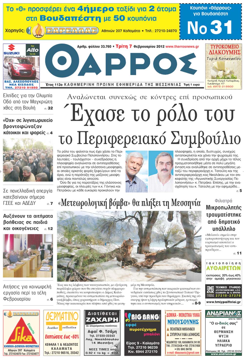 Το πρωτοσέλιδο απο το Θάρρος Μεσσηνίας 7 Φεβρουαρίου 2012
