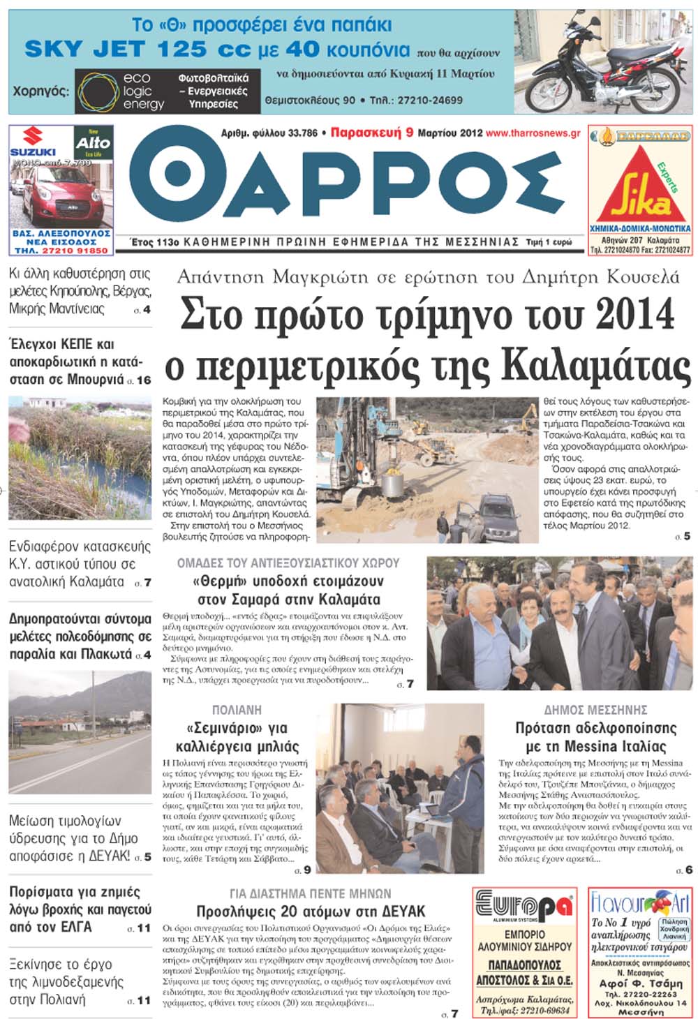 Το πρωτοσέλιδο απο το Θάρρος Μεσσηνίας 9 Μαρτίου 2012
