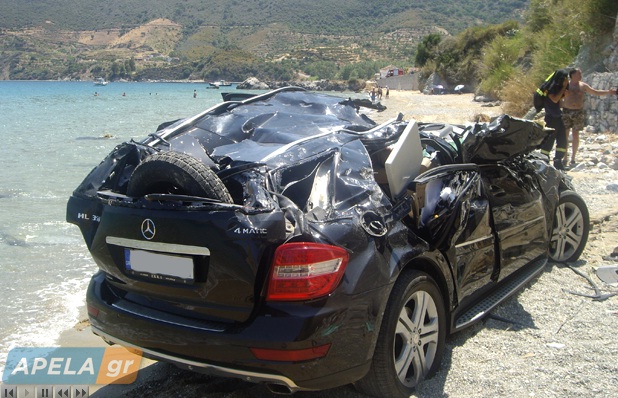 Τα αυτοκίνητο που έπεσε στη χαράδρα, σταμάτησε στην παραλία του Σκουταρίου ένα μέτρο μόλις από τη θάλασσα.