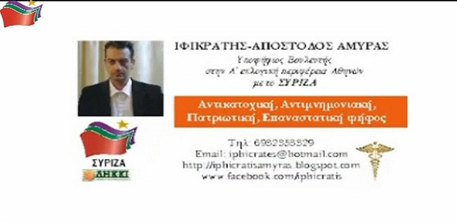 Αντικατοχική, Αντιμνημονιακή, Πατριωτική, Επαναστατική ψήφος στον Ιφικράτη-Απόστολο Αμυρά